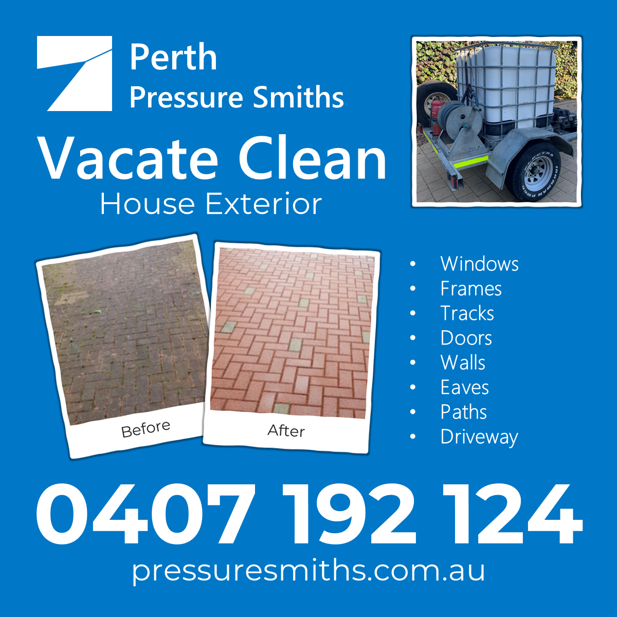 Pressure Smiths specialise in pressure cleaning the external areas of your home or business. It's all we do and we're good at it.